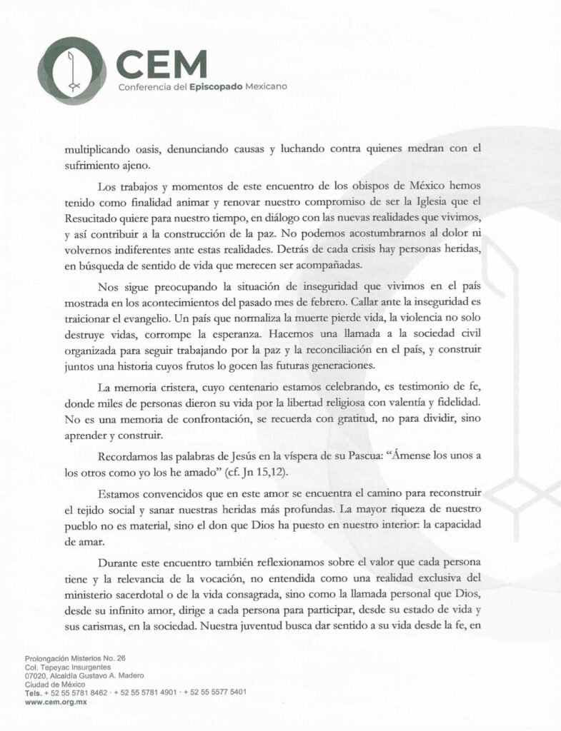 Comparte de redes: MENSAJE AL PUEBLO DE DIOS Asamblea Plenaria CXX
