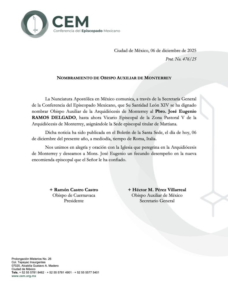 Comparte de redes: Nombramiento de Obispo Auxiliar de Monterrey