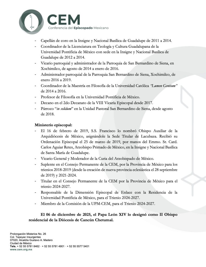 Comparte de redes: Nombramiento del Obispo de Cancún-Chetumal y Aceptación de Renuncia